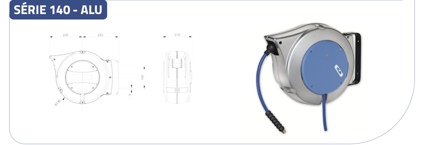 Enrouleur automatique Série 140 ALU – Tambour aluminium – 16 m – Ø 10 mm – 15 bars