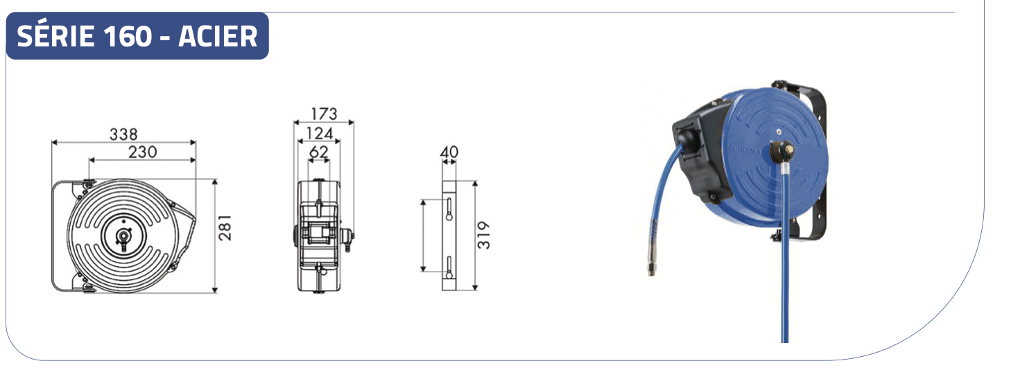 Enrouleur automatique Série 160 Acier – Tambour acier – 12 m – Ø 8 mm – 20 bars